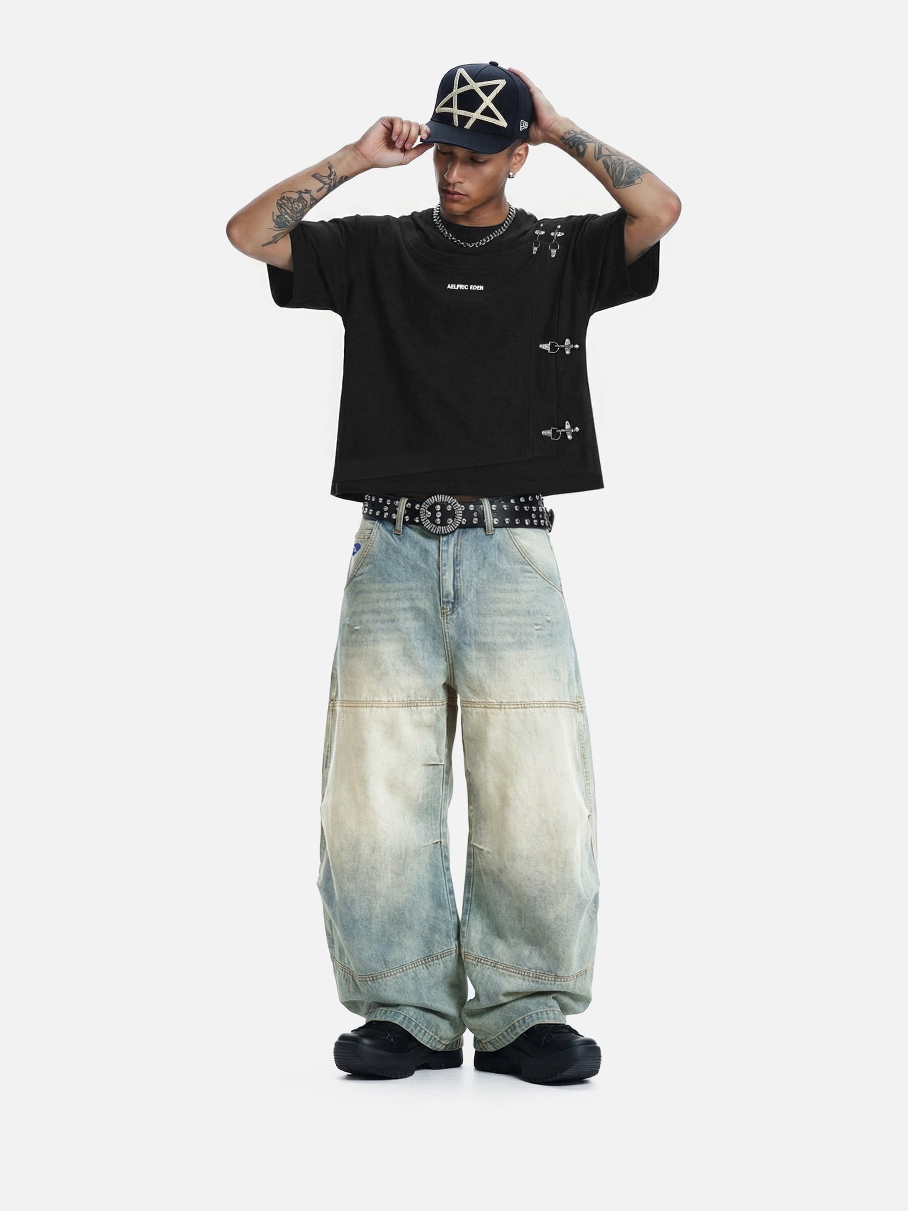 Aelfric Eden Washed Panel Baggy Barrel Jeans