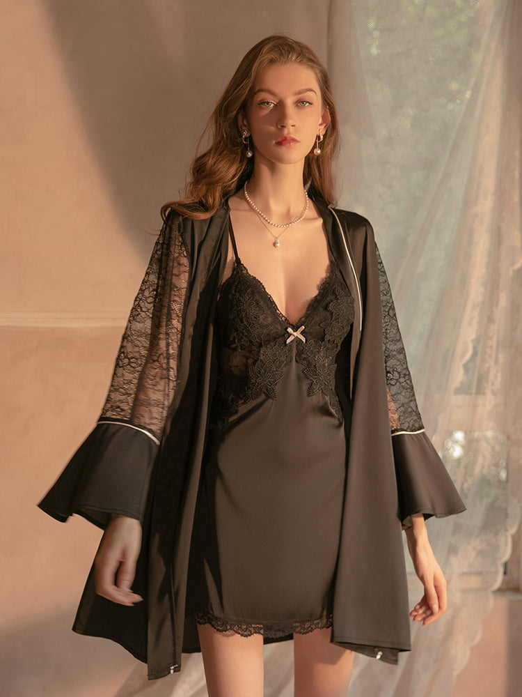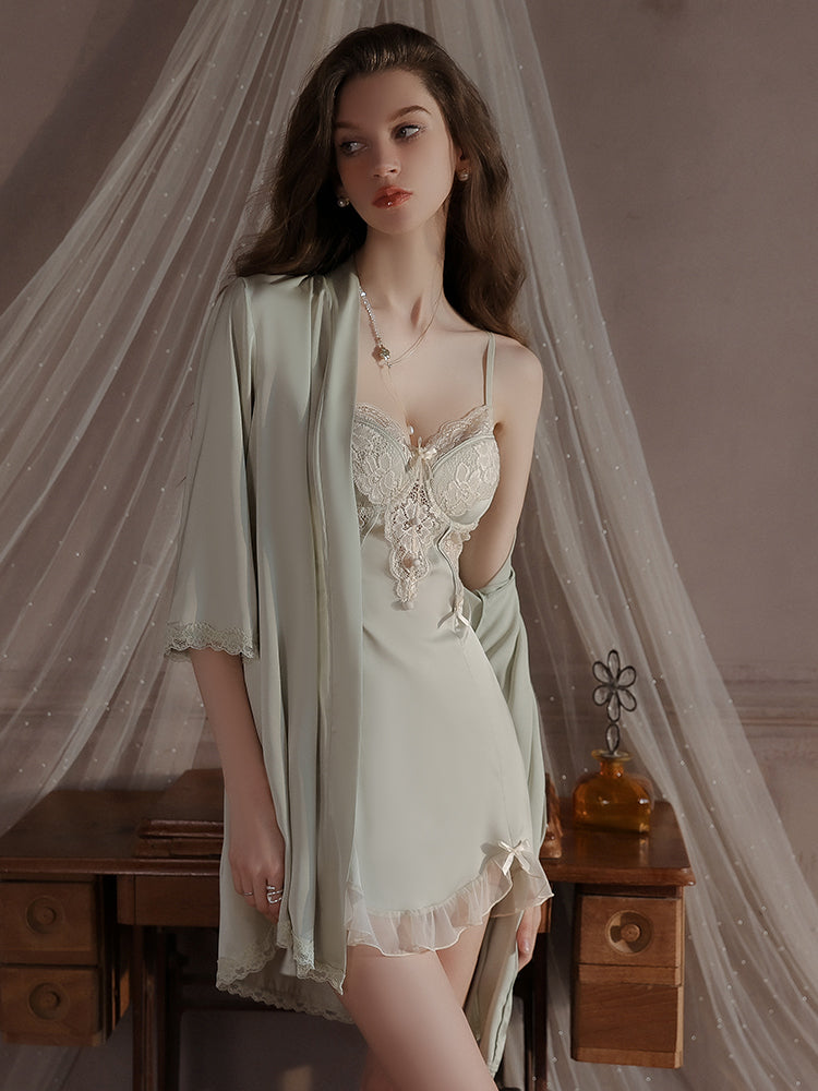 G-4240 Women's Sexy Lace Satin Cami Nightdress with Built-in Pads, Lingerie Sleepwear Robe Set$6.80 USDDescribe your product