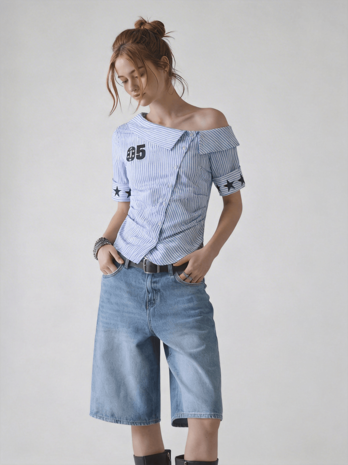 Aelfric Eden Stripe Star Off-The-Shoulder Short Sleeve Shirt$6.00 USD$49.95 USDDescribe your product