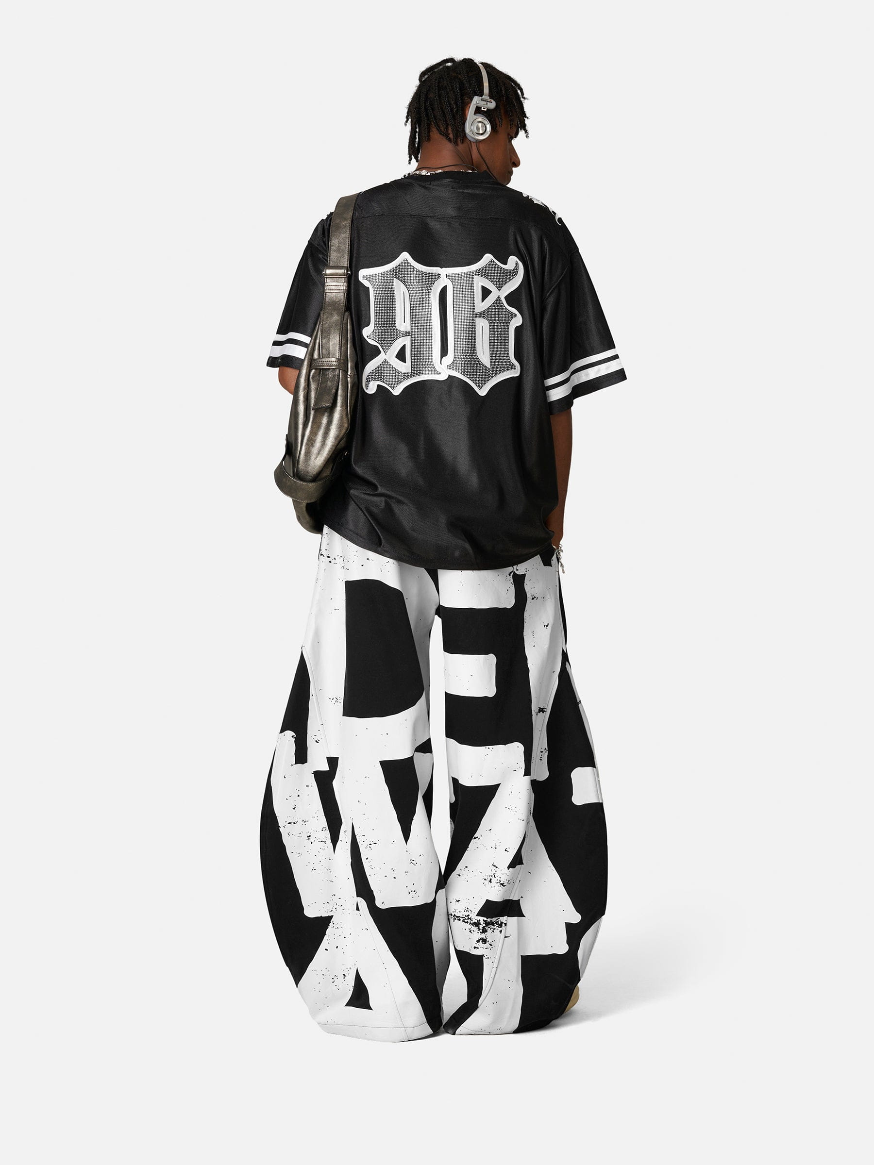 Bold meets glam in this street-cool tee—featuring sporty striped sleeves, a flattering V-neck that highlights your neckline, and a statement chest logo. The back pops with a dazzling “96” print embellished in rhinestones, bringing major sparkle to your everyday casual. Perfect for flexing that luxe athletic vibe wherever you go.