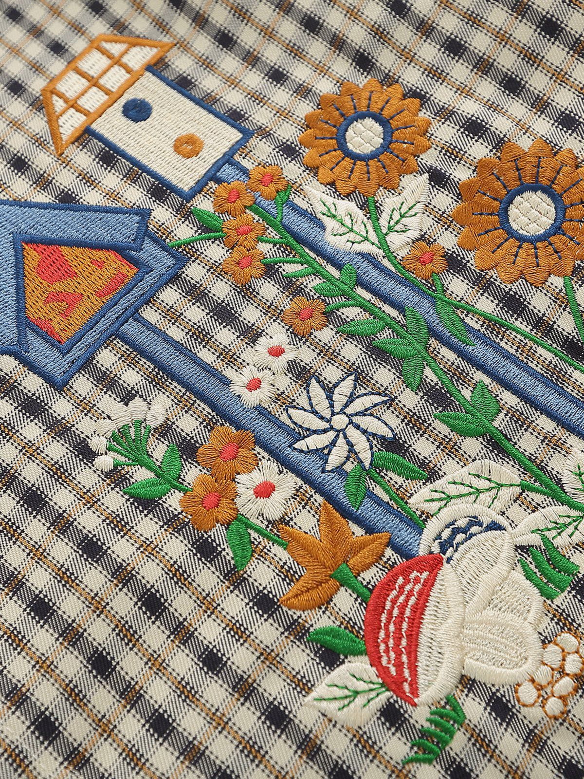 The Plaid Embroidery Shirt features a classic plaid pattern with intricate embroidery, adding a unique twist to a timeless design. Its lightweight fabric and short sleeves make it a comfortable choice for casual, everyday wear.