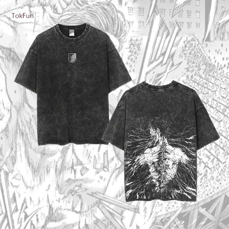Experience the perfect blend of comfort and style with our Attack Titan cotton wash T-shirt. This unisex clothing item is designed to be worn by anyone, making it a versatile addition to your wardrobe. Ideal for fans of Attack Titan, this T-shirt is a great way to express your fandom. Whether you're lounging at home or out with friends, this T-shirt is a must-have for any fan.