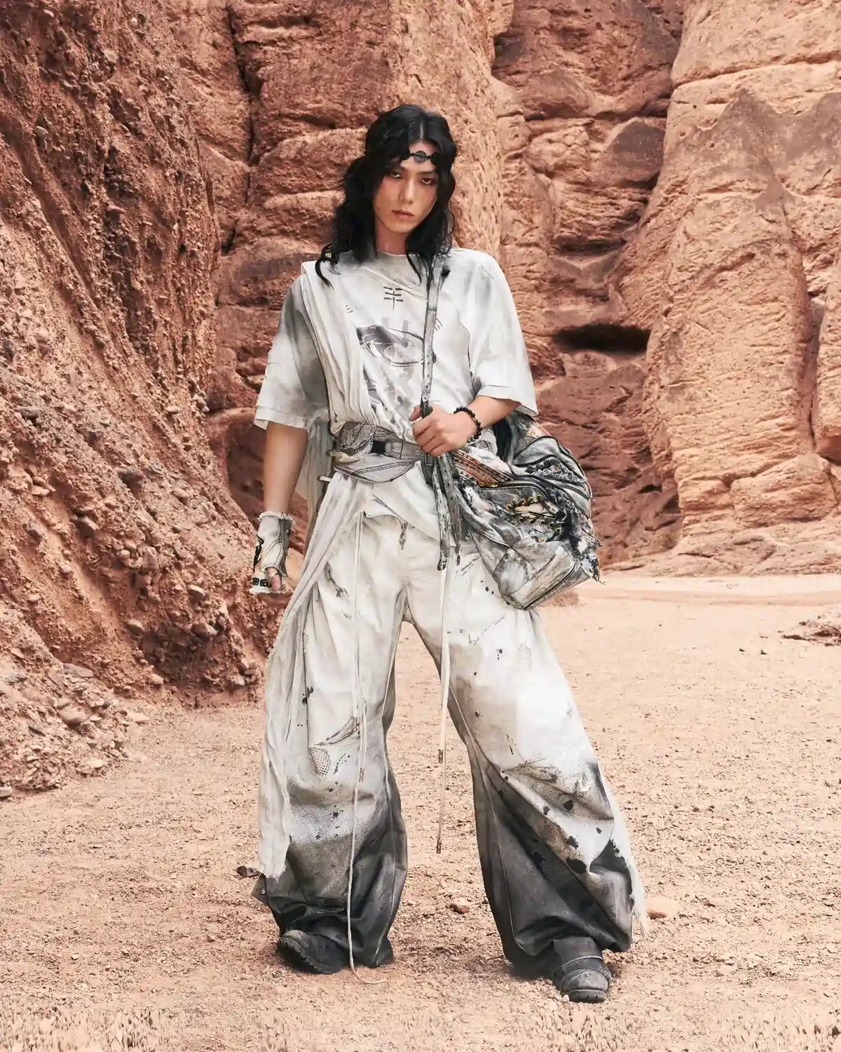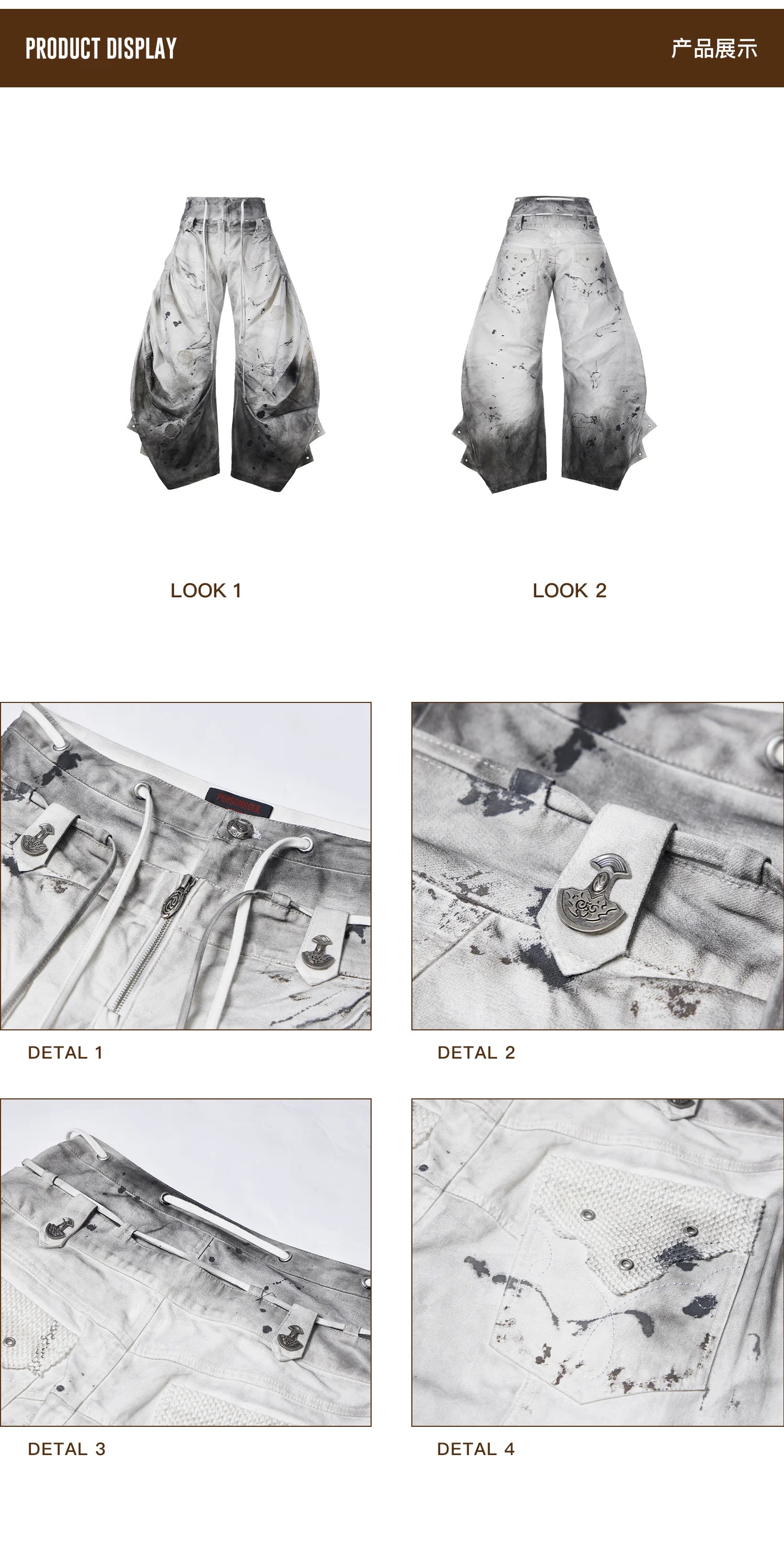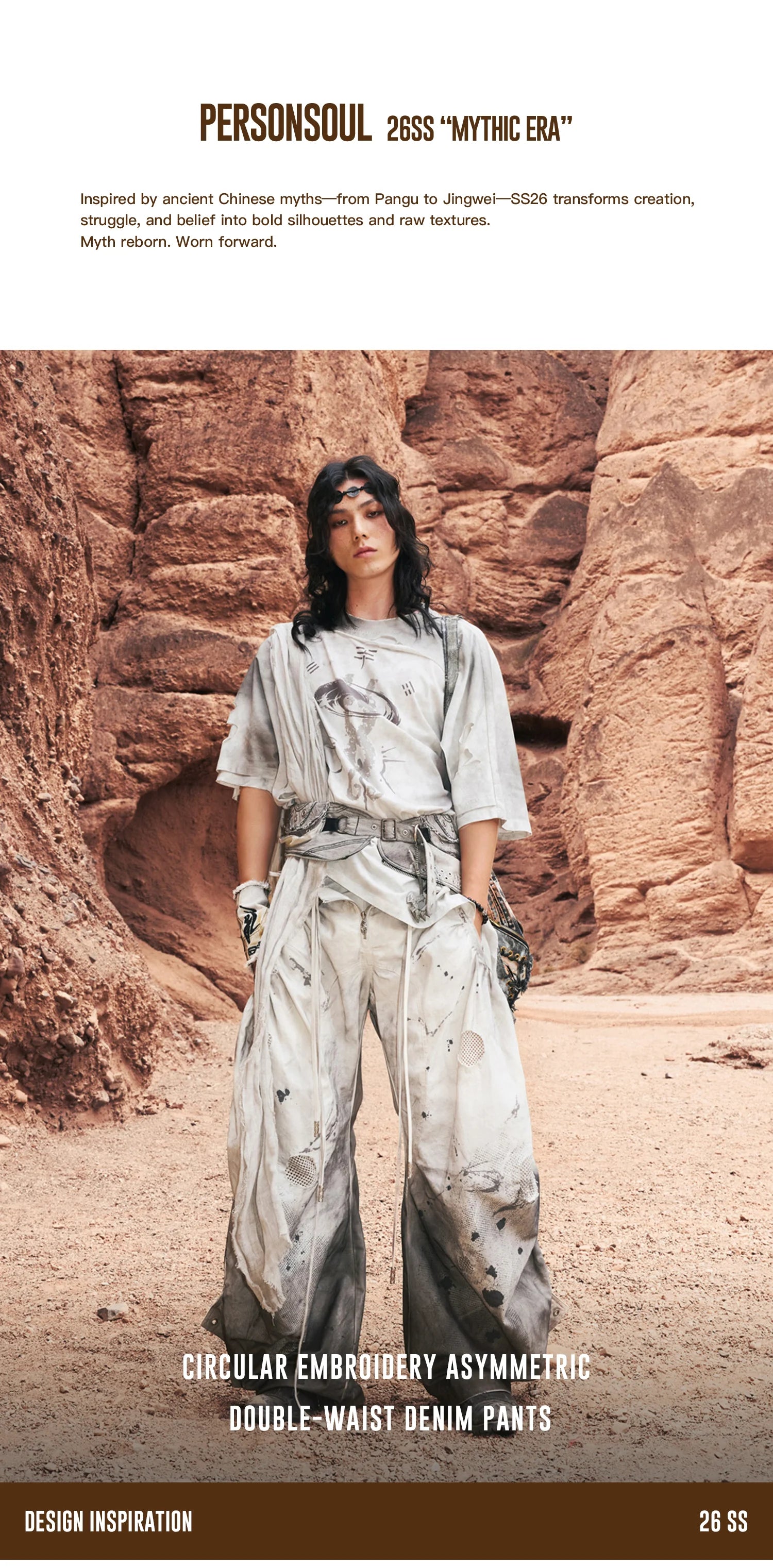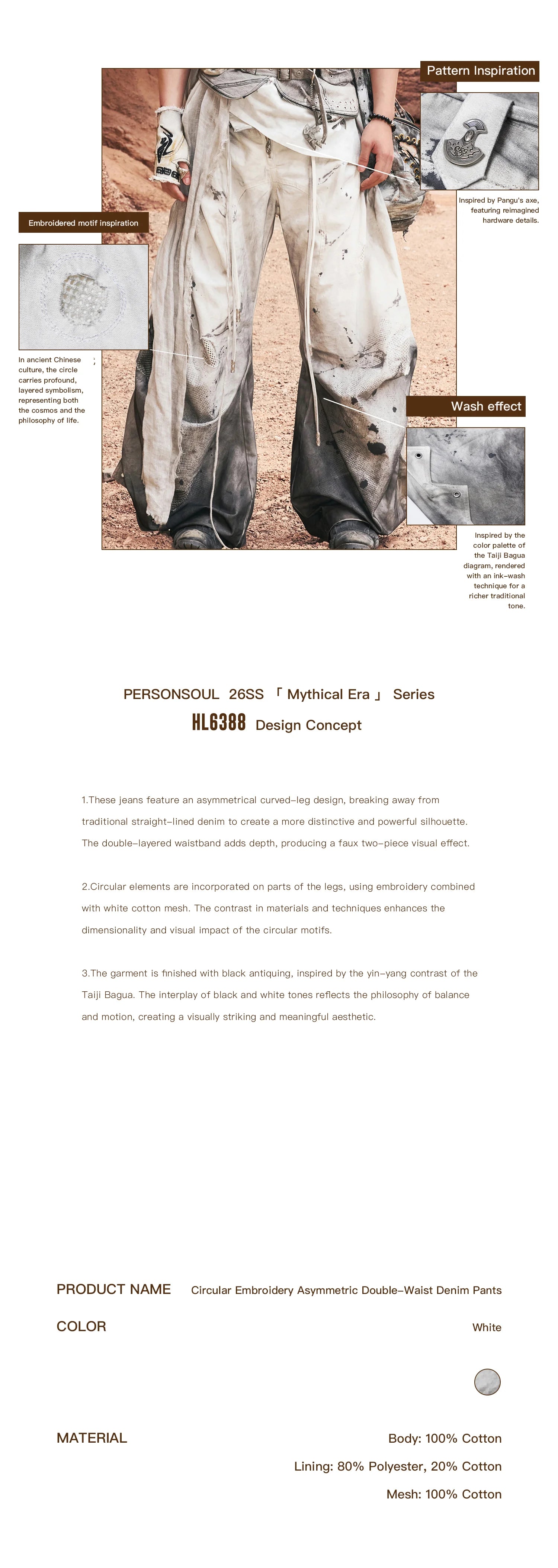 Personsoul Circular Embroidery Asymmetric Double-Waist Denim Jeans