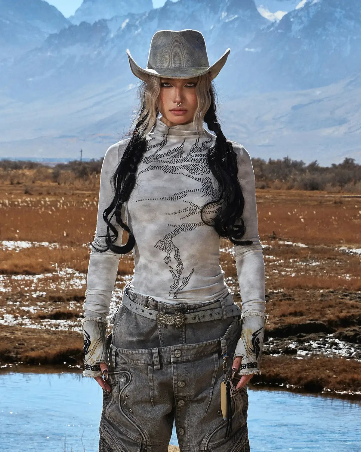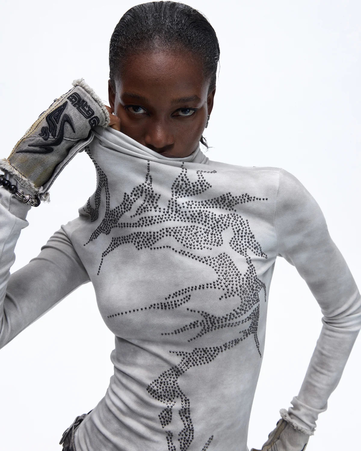 Personsoul Metallic Crystal-Lightning Long Sleeve Tee