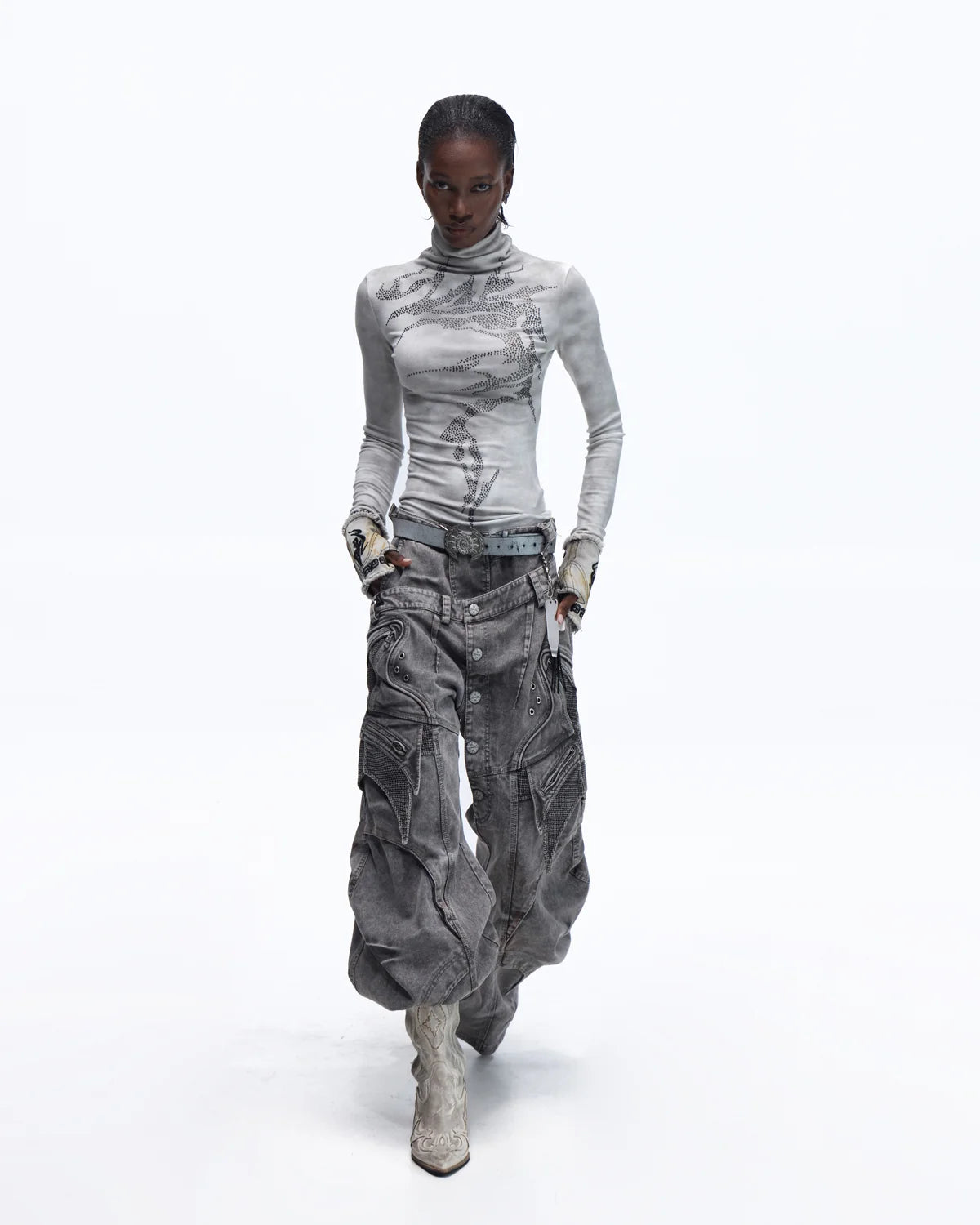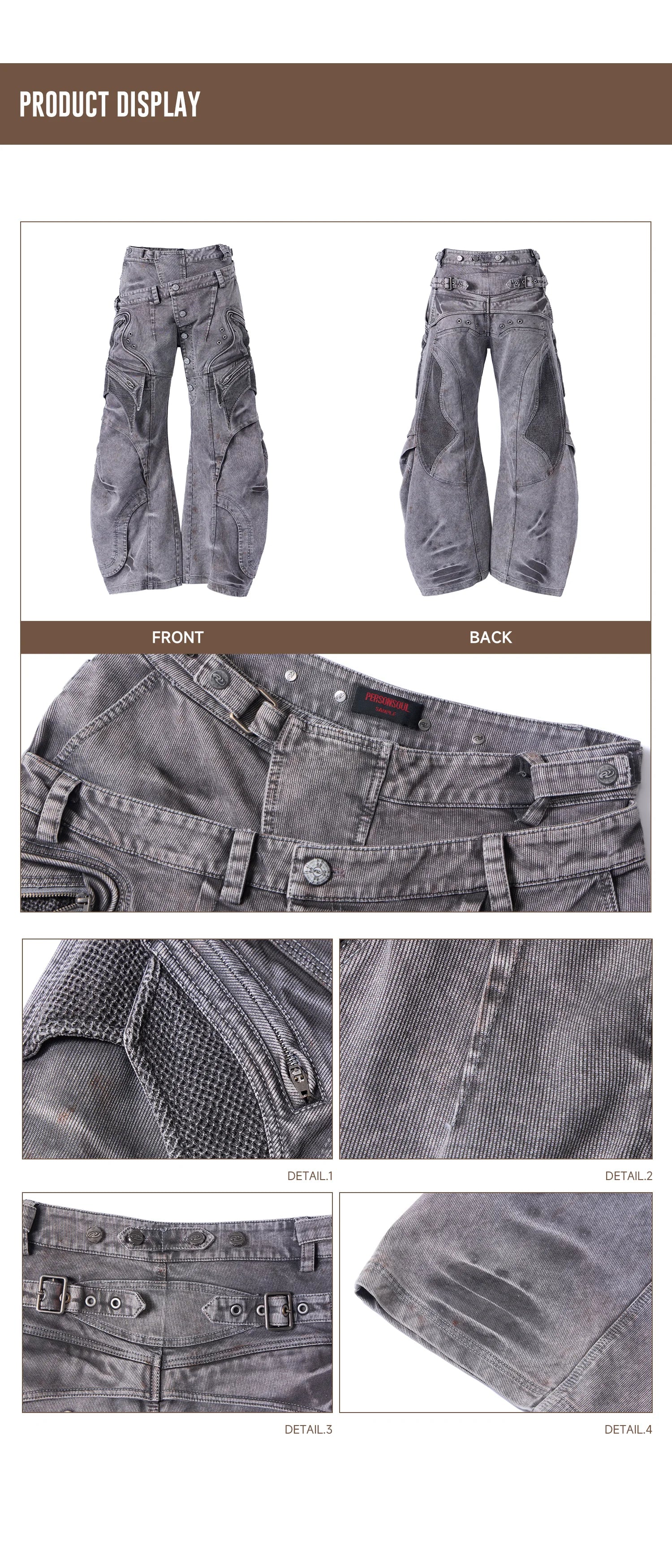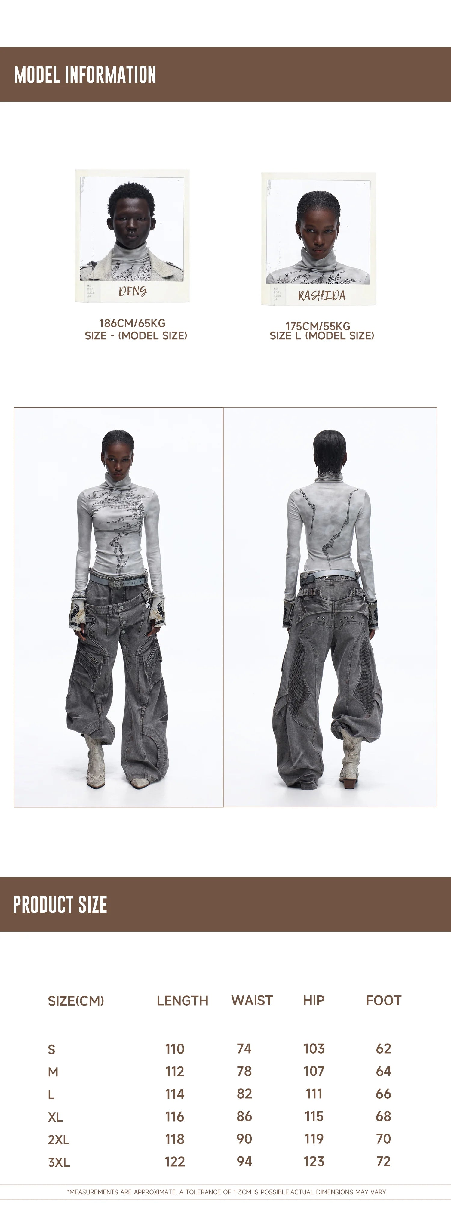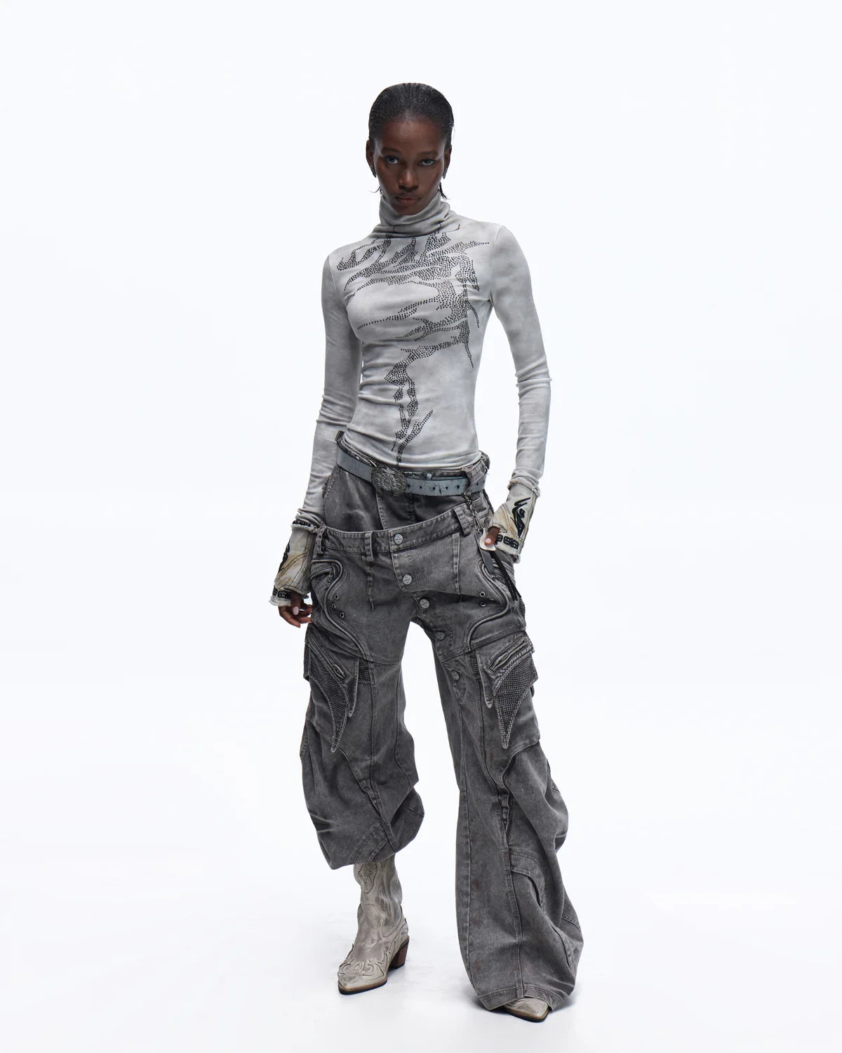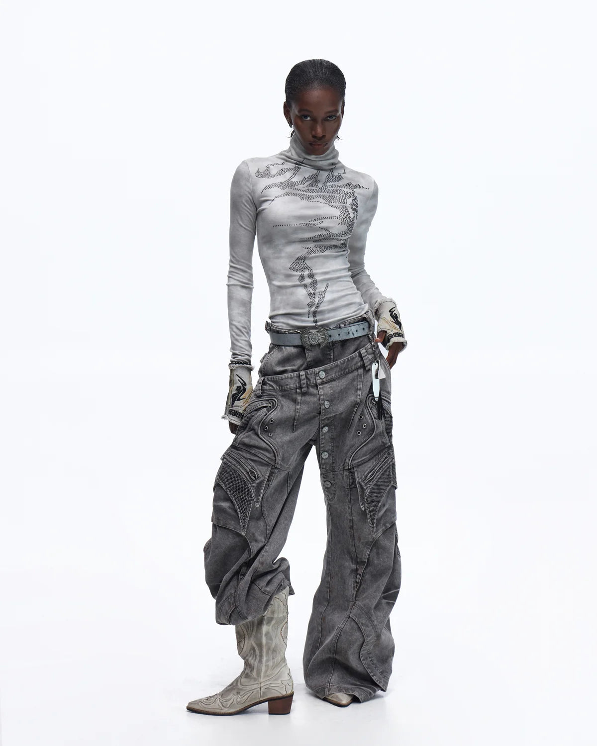 Personsoul Mock Double-Waist Wide-Leg Cargo Pants