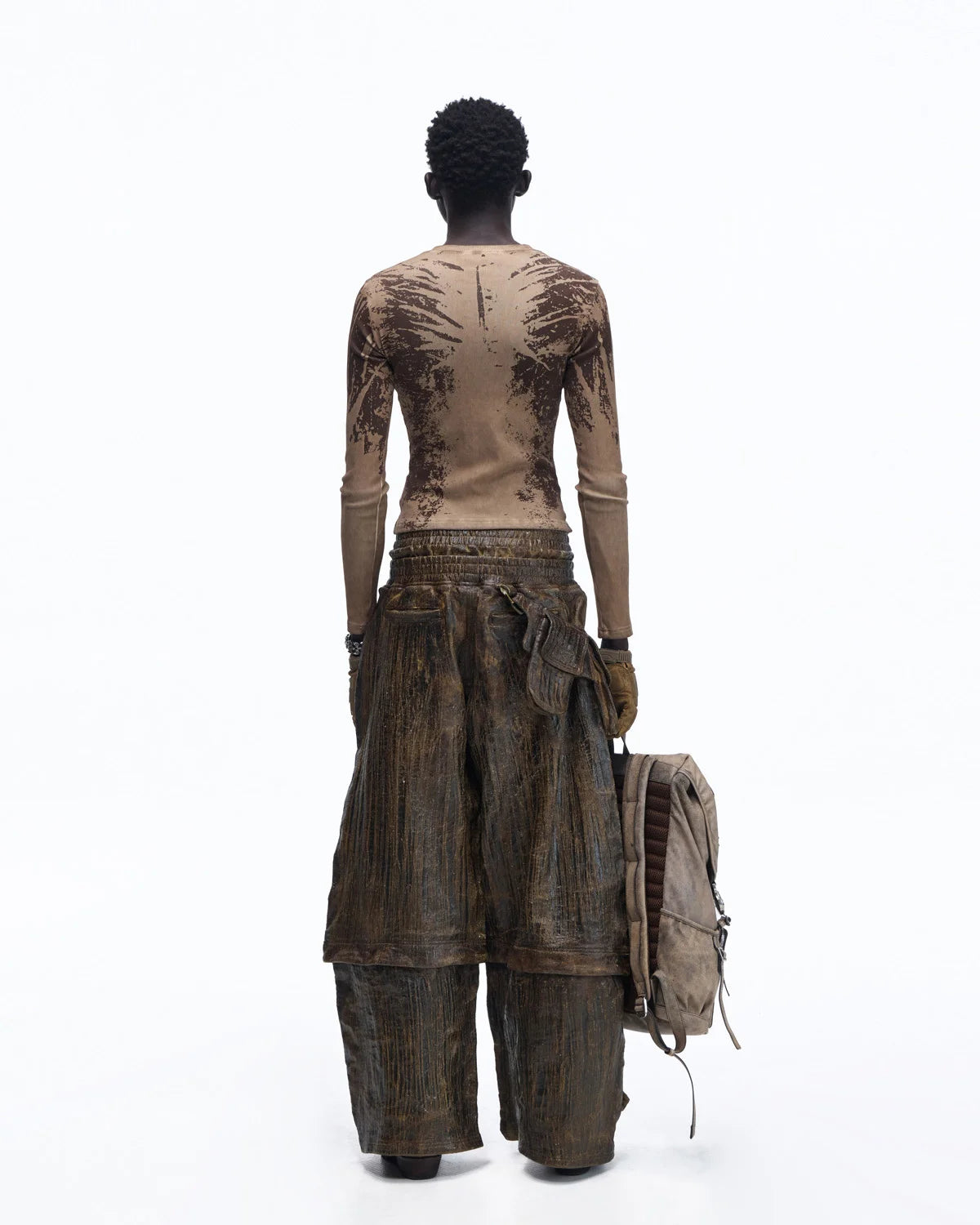 Personsoul Sun Totem Slim Long Sleeve Tee In Brown