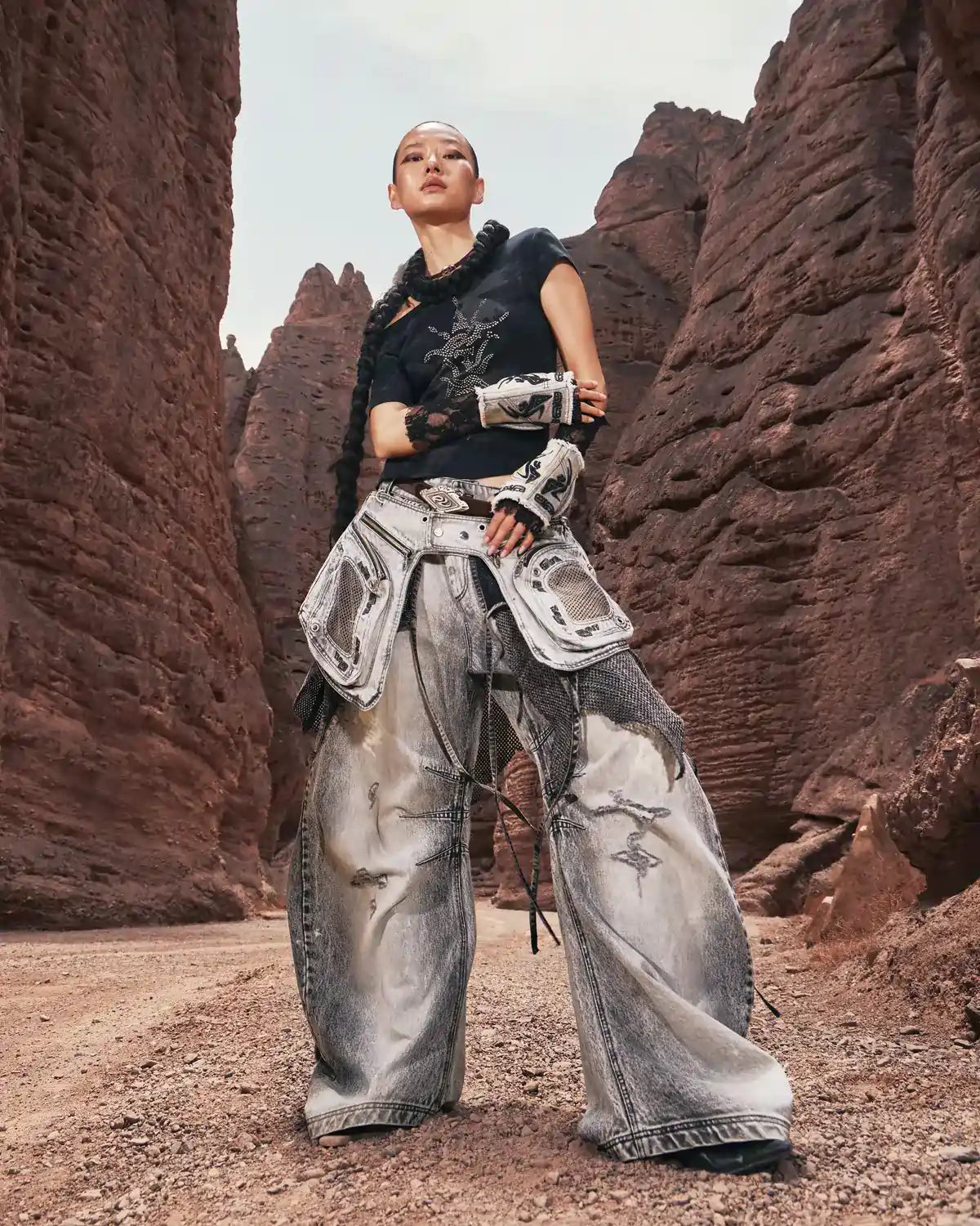 Personsoul Vintage Detachable Panel Curved Denim Jeans