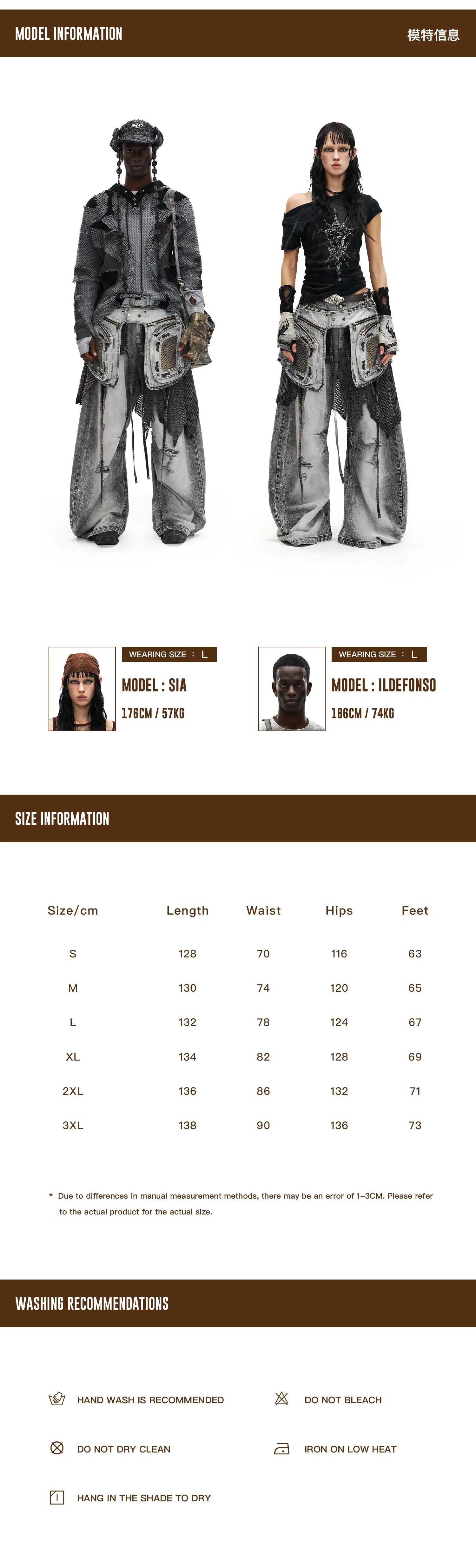 Product Info & Size Chart Details