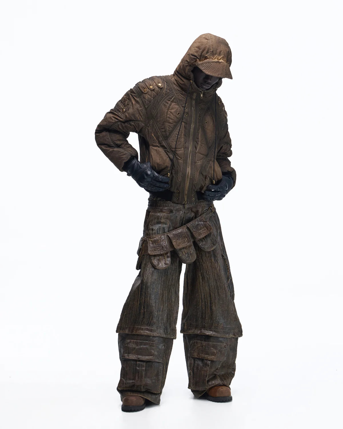 Personsoul Waxed Vintage Double-Waist Cargo Pants(Limited 100 pieces)