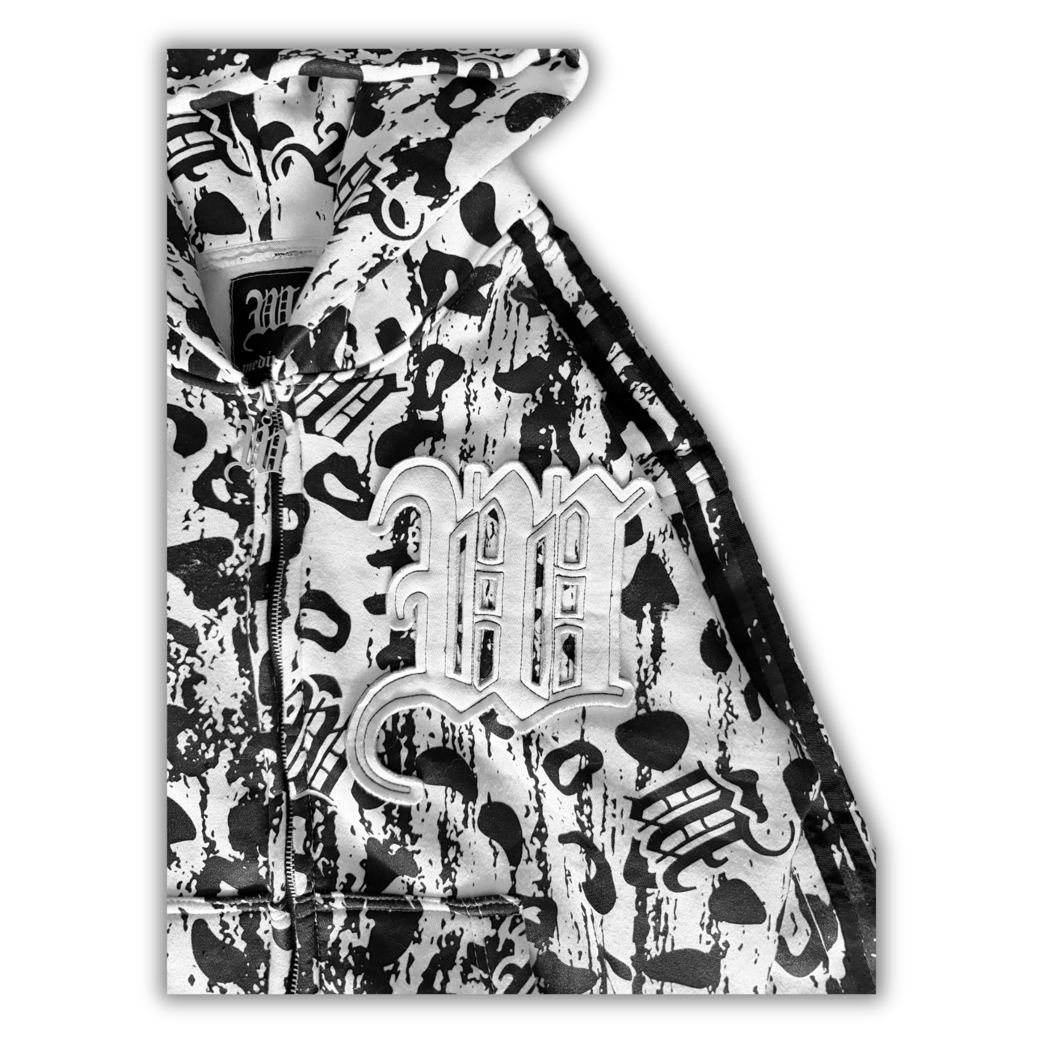 Details: Reverse stitch distressing adds edge. Custom metal zipper. 4 stitched stripes going down arms and legs.