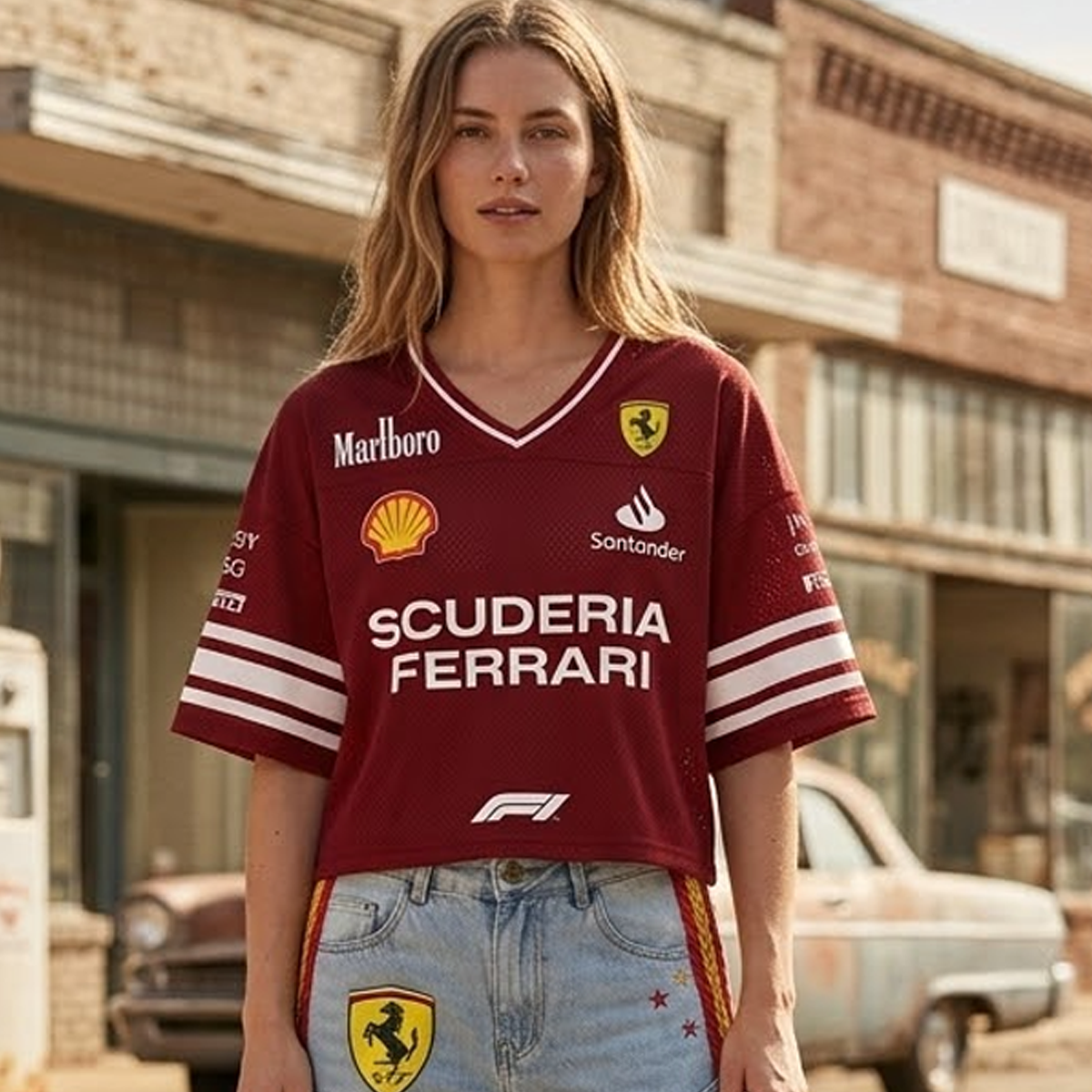 V-neck Mesh T-shirt With A Retro Racing Theme