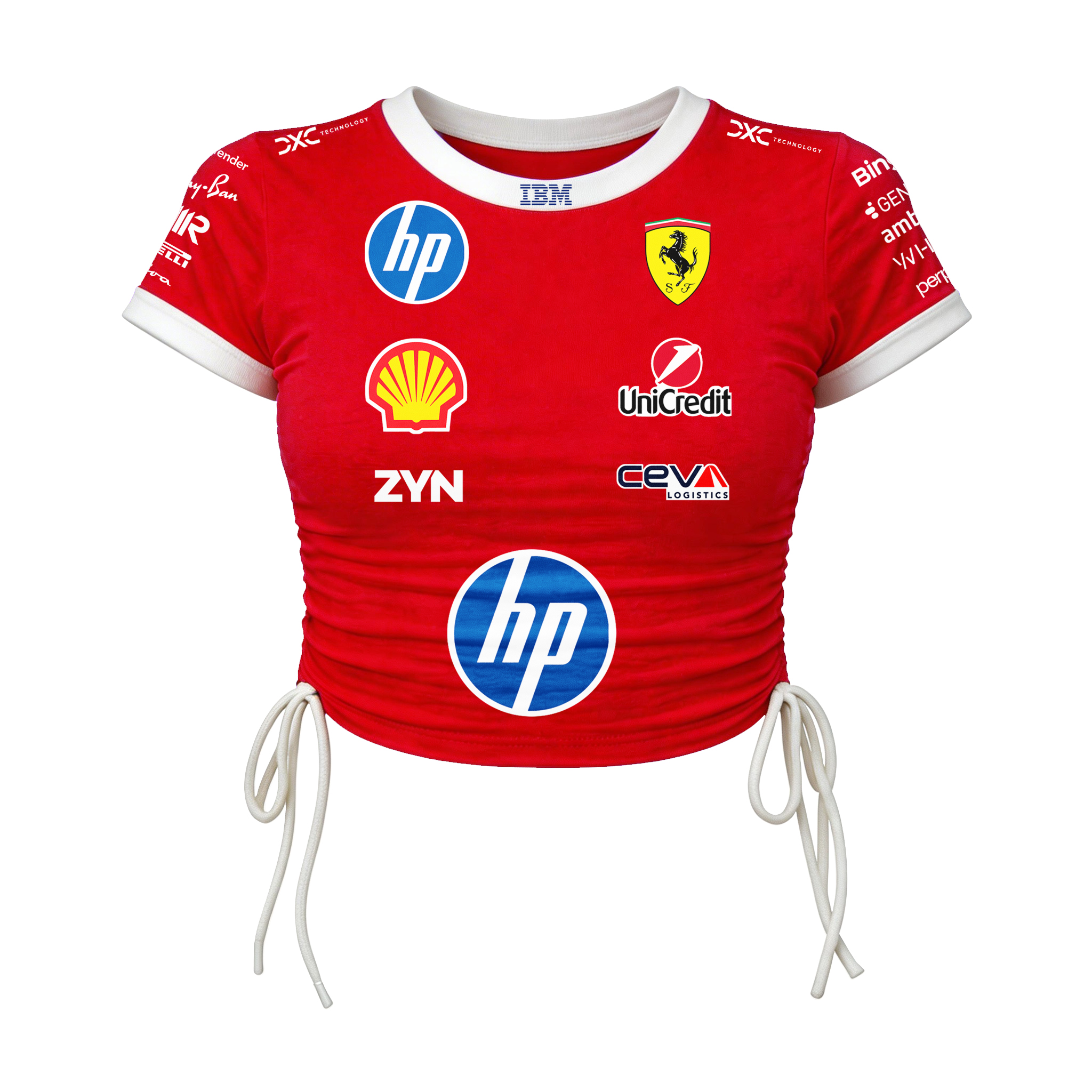 Women's Cropped T-Shirt — Slimming, Waist-Cinching, Short-Sleeve Top With Side Drawstrings And Racing Graphic Print